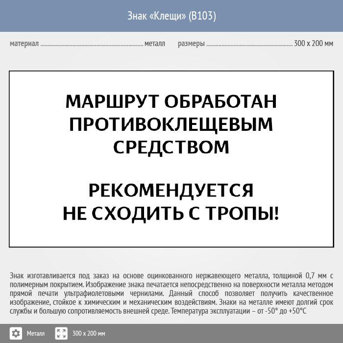Знак «Клещи», B103 (металл, 400х300 мм) в Сургуте купить