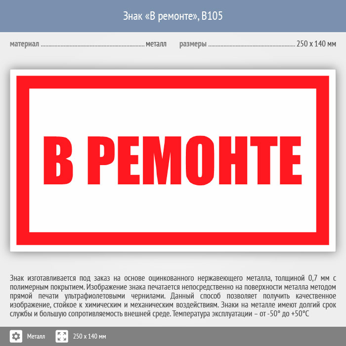 Знак «В ремонте», B105 (металл, 250х140 мм) в Сургуте купить