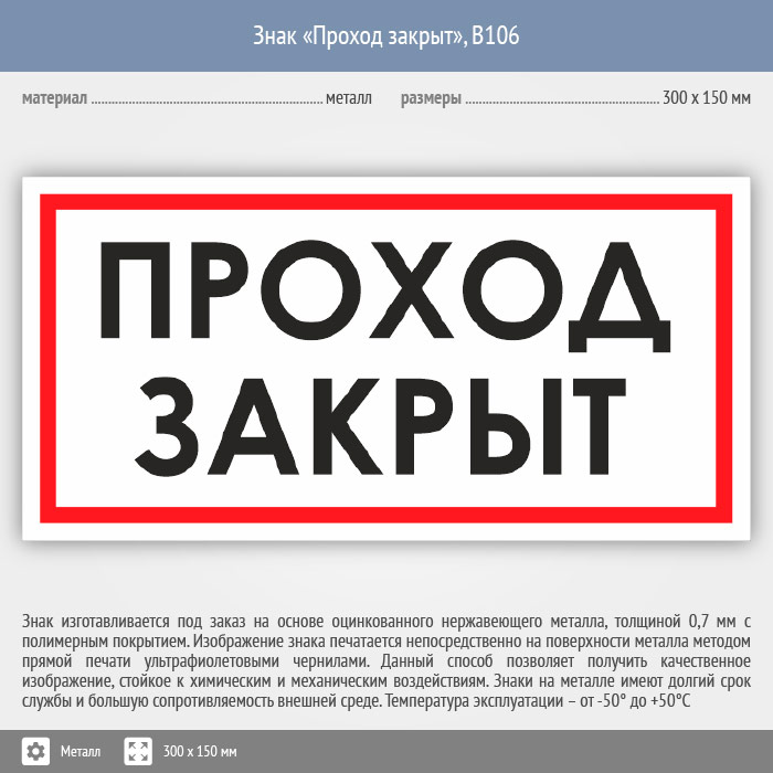 Знак «Проход закрыт», B106 (металл, 300х150 мм) в Сургуте купить