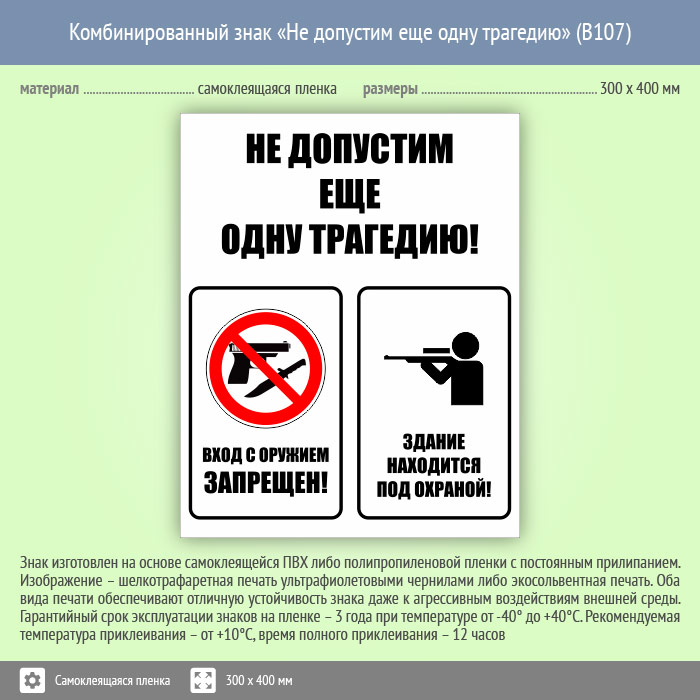 Комбинированный знак «Не допустим еще одну трагедию», B107 (пленка, 300х400 мм) в Сургуте купить