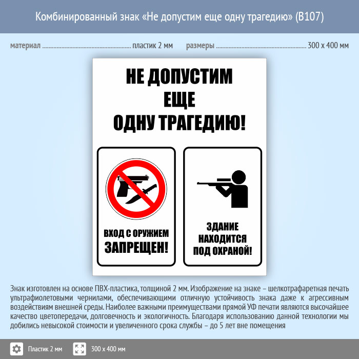 Комбинированный знак «Не допустим еще одну трагедию», B107 (пластик, 300х400 мм) в Сургуте купить