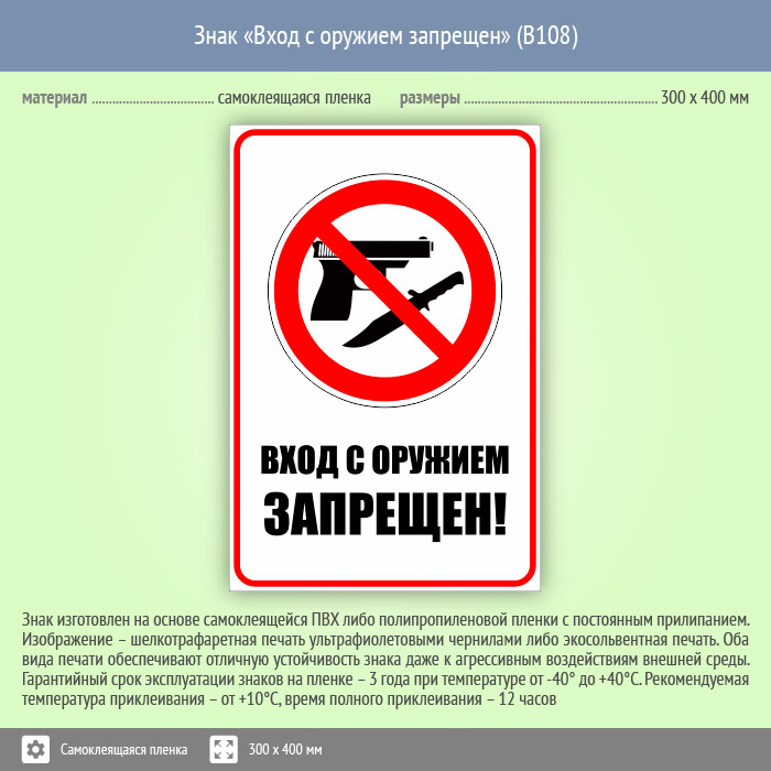 Знак «Вход с оружием запрещен», B108 (пленка, 300х400 мм) в Сургуте купить