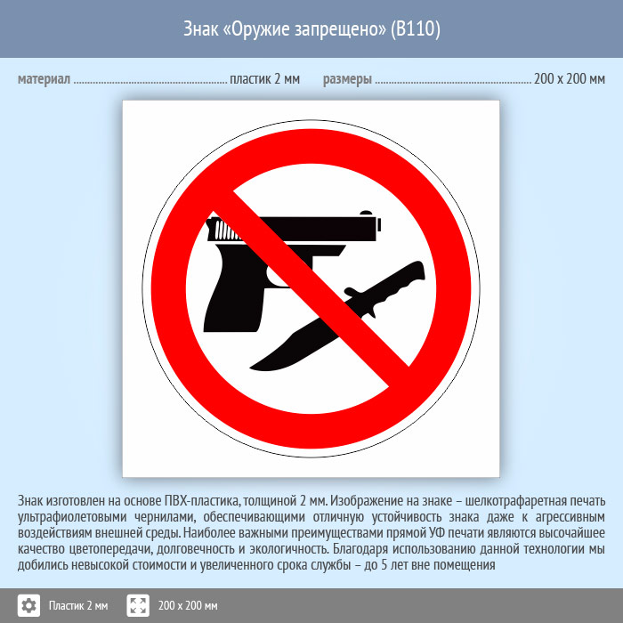 Знак «Оружие запрещено», B110 (пластик, 200х200 мм) в Сургуте купить