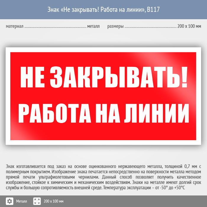 Знак «Не закрывать! Работа на линии», B117 (металл, 200х100 мм) в Сургуте купить