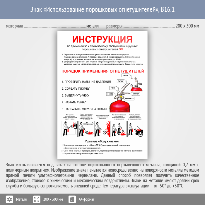 Знак «Использование порошковых огнетушителей», B16.1 (металл, 200х300 мм) в Сургуте купить