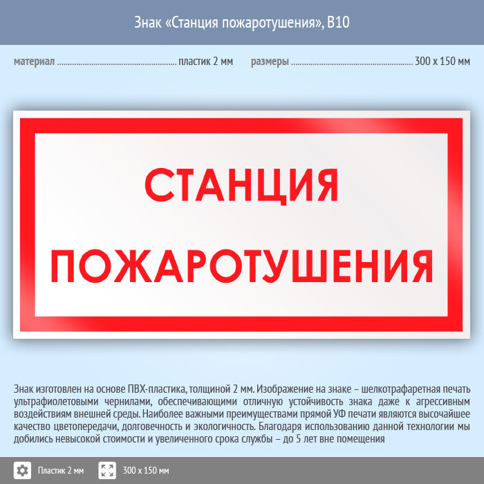 Знак «Станция пожаротушения», B10 (пластик, 300х150 мм) в Сургуте купить