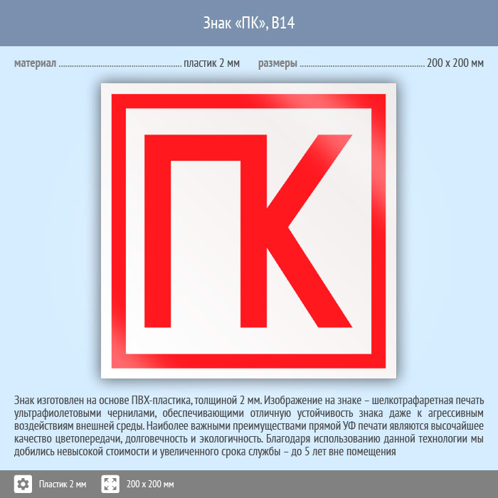 Знак «ПК», B14 (пластик, 200х200 мм) в Сургуте купить