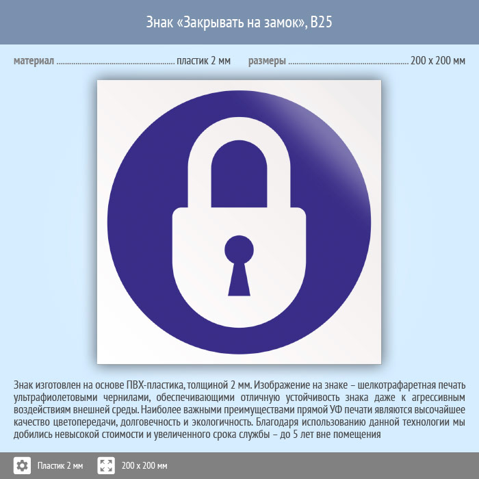 Знак «Закрывать на замок», B25 (пластик, 200х200 мм) в Сургуте купить