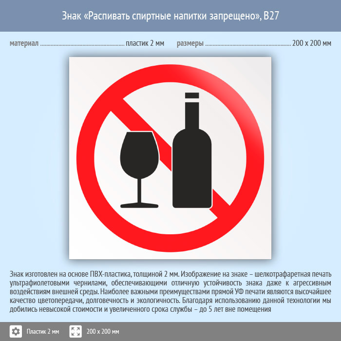 Знак «Распивать спиртные напитки запрещено», B27 (пластик, 200х200 мм) в Сургуте купить