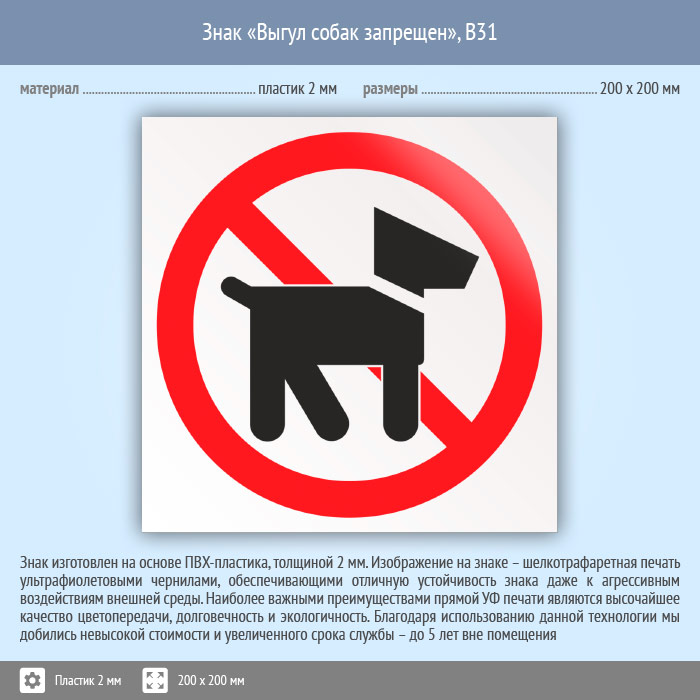 Знак «Выгул собак запрещен», B31 (пластик, 200х200 мм) в Сургуте купить
