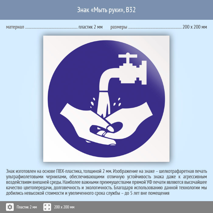 Знак «Мыть руки», B32 (пластик, 200х200 мм) в Сургуте купить