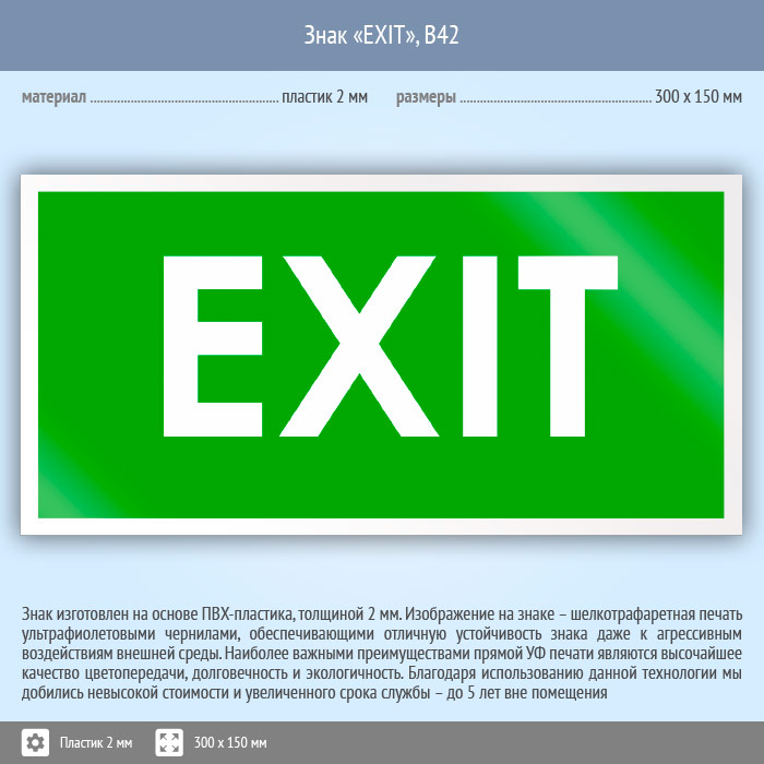 Знак «EXIT», B42 (пластик, 300х150 мм) в Сургуте купить