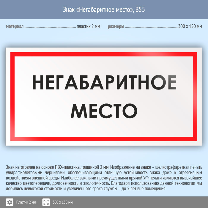Знак «Негабаритное место», B55 (пластик, 300х150 мм) в Сургуте купить