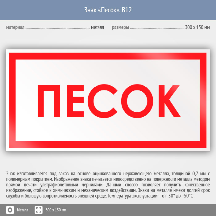 Знак «Песок», B12 (металл, 300х150 мм) в Сургуте купить