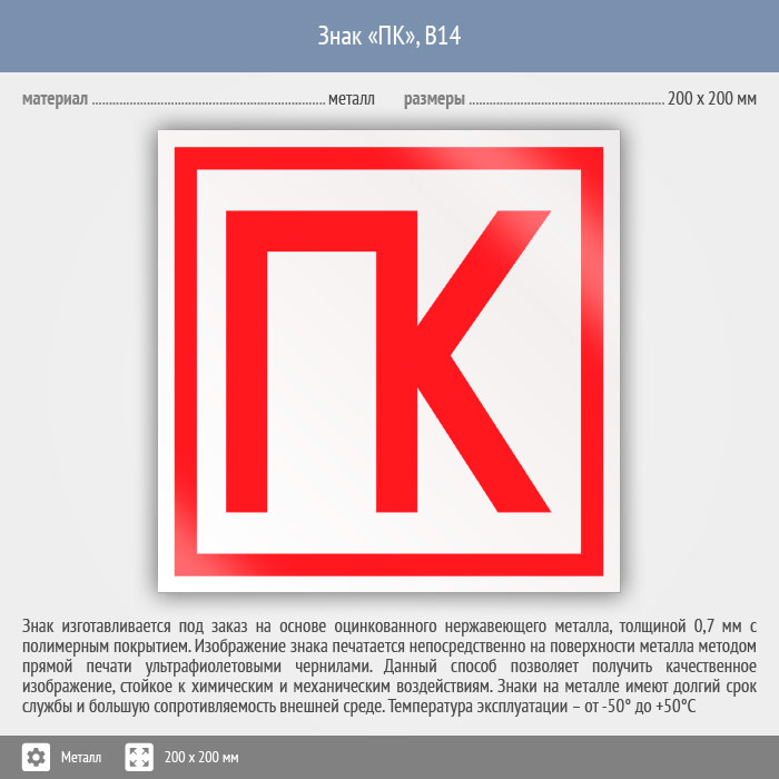 Знак «ПК», B14 (металл, 200х200 мм) в Сургуте купить
