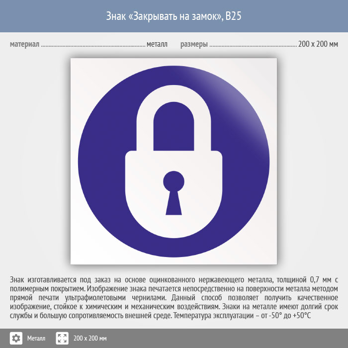 Знак «Закрывать на замок», B25 (металл, 200х200 мм) в Сургуте купить