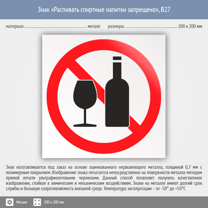 Знак «Распивать спиртные напитки запрещено», B27 (металл, 200х200 мм) в Сургуте купить