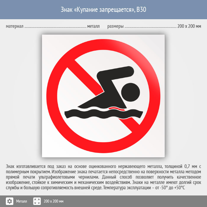 Знак «Купание запрещено», B30 (металл, 200х200 мм) в Сургуте купить