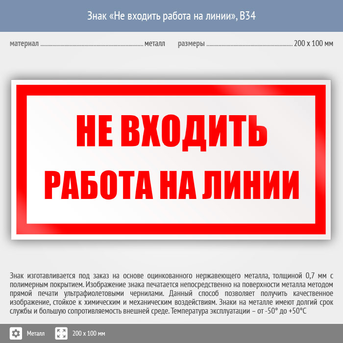 Знак «Не входить работа на линии», B34 (металл, 200х100 мм) в Сургуте купить