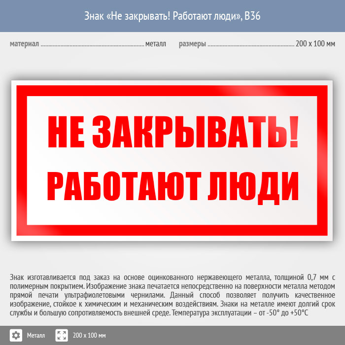Знак «Не закрывать! Работают люди», B36 (металл, 200х100 мм) в Сургуте купить