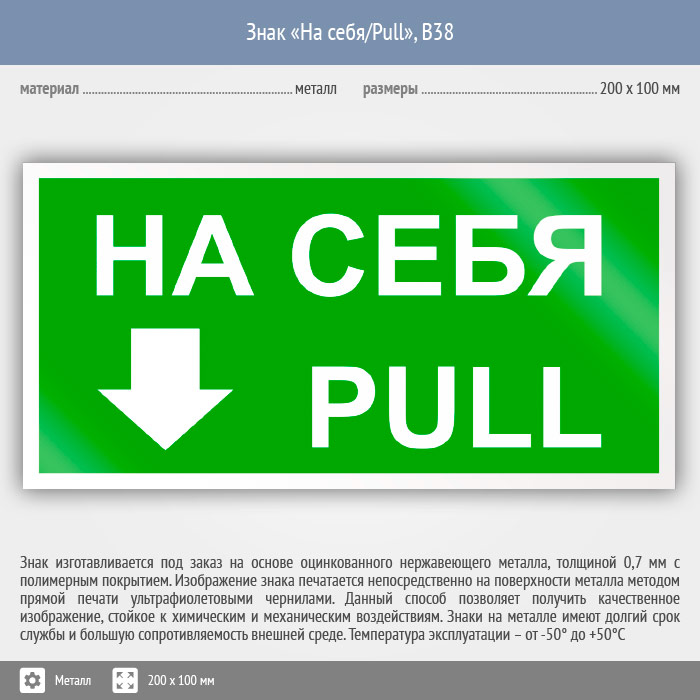 Знак «На себя/Pull», B38 (металл, 200х100 мм) в Сургуте купить