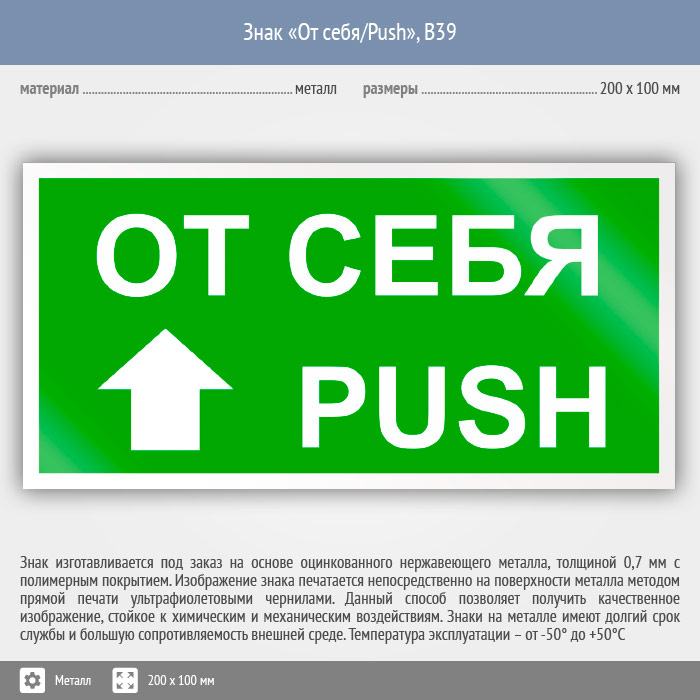 Знак «От себя/Push», B39 (металл, 200х100 мм) в Сургуте купить
