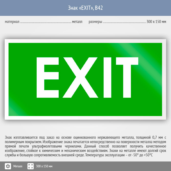 Знак «EXIT», B42 (металл, 300х150 мм) в Сургуте купить