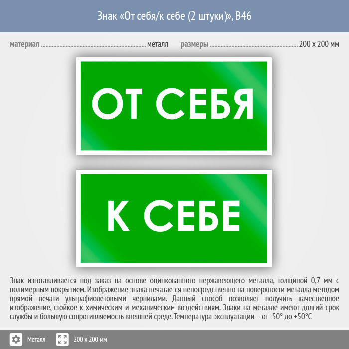Знак «От себя/к себе», B46 (2 штуки, металл, 200х100 мм) в Сургуте купить