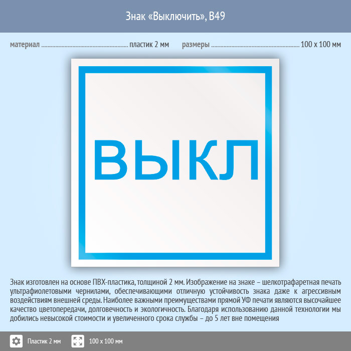 Знак «Выключить», B49 (пластик, 100х100 мм) в Сургуте купить
