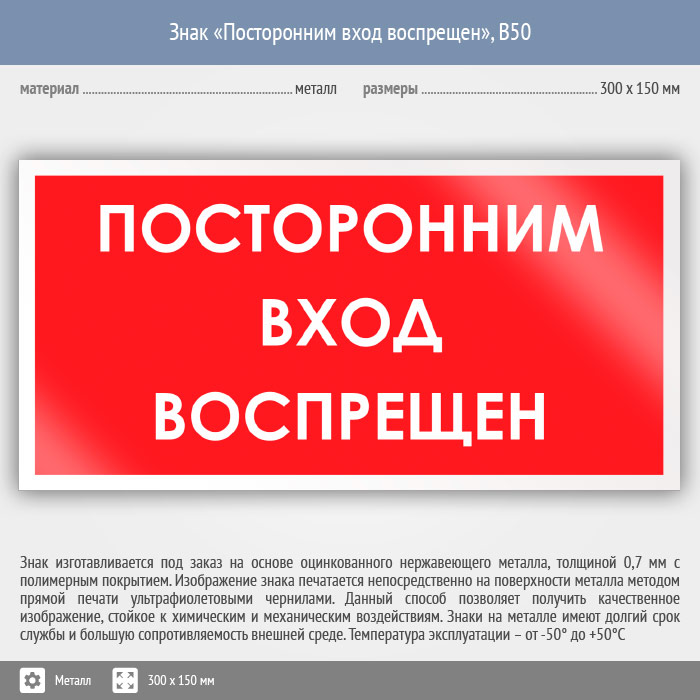 Знак «Посторонним вход воспрещен», B50 (металл, 300х150 мм) в Сургуте купить