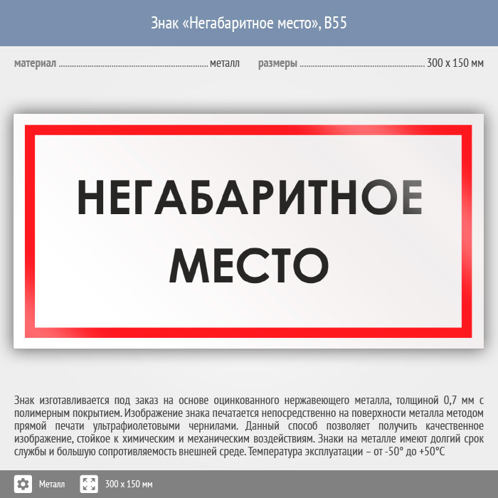 Знак «Негабаритное место», B55 (металл, 300х150 мм) в Сургуте купить