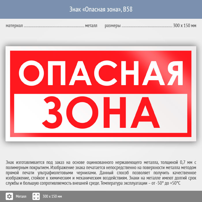 Знак «Опасная зона», B58 (металл, 300х150 мм) в Сургуте купить