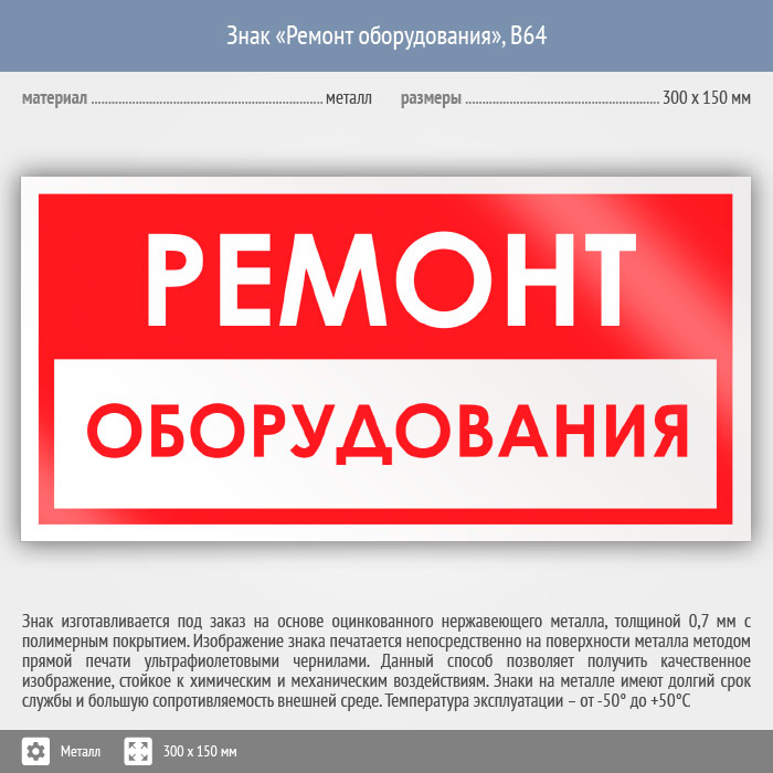 Знак «Ремонт оборудования», B64 (металл, 300х150 мм) в Сургуте купить