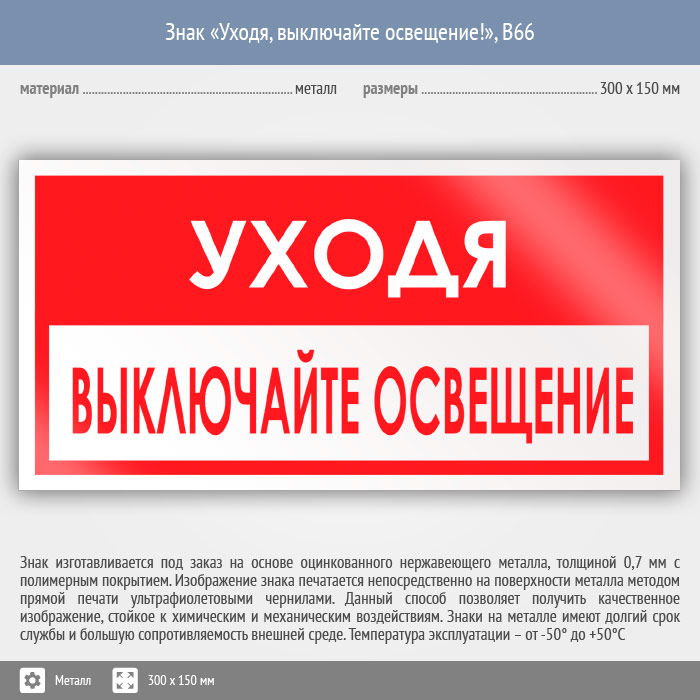 Знак «Уходя, выключайте освещение!», B66 (металл, 300х150 мм) в Сургуте купить
