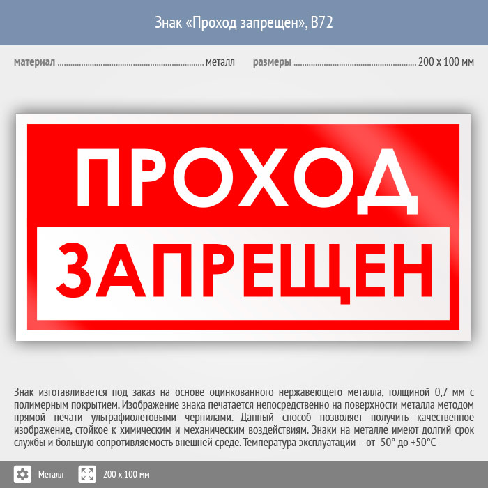Знак «Проход запрещен», B72 (металл, 200х100 мм) в Сургуте купить