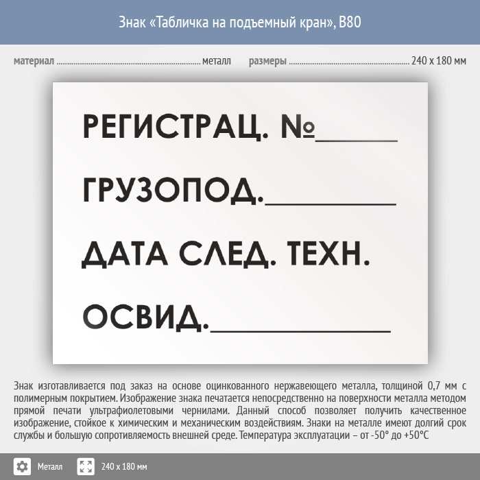 Знак «Табличка на подъемный кран», B80 (металл, 240х180 мм) в Сургуте купить
