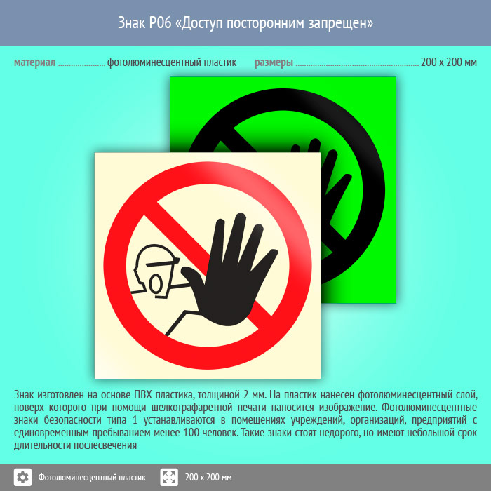 Знак P06 «Доступ посторонним запрещен» (фотолюминесцентный пластик, 200х200 мм) в Сургуте купить