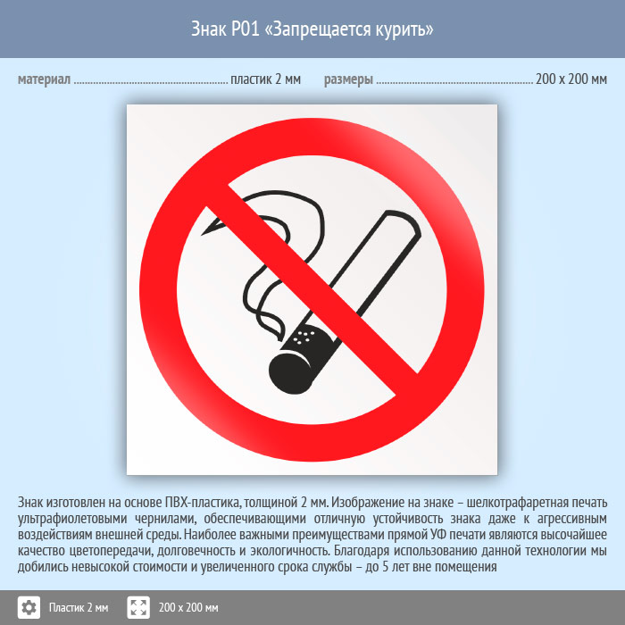 Знак P01 «Запрещается курить» (пластик, 200х200 мм) в Сургуте купить