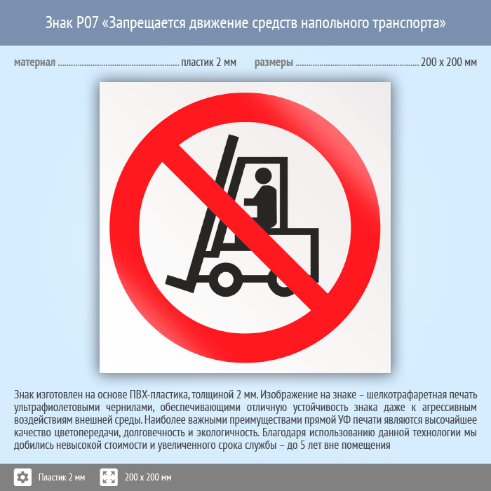 Знак P07 «Запрещается движение средств напольного транспорта» (пластик, 200х200 мм) в Сургуте купить