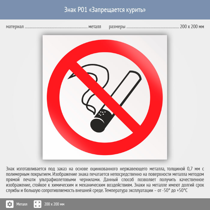 Знак P01 «Запрещается курить» (металл, 200х200 мм) в Сургуте купить