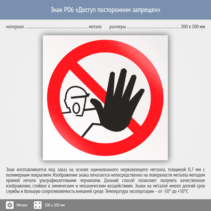 Знак P06 «Доступ посторонним запрещен» (металл, 200х200 мм) в Сургуте купить