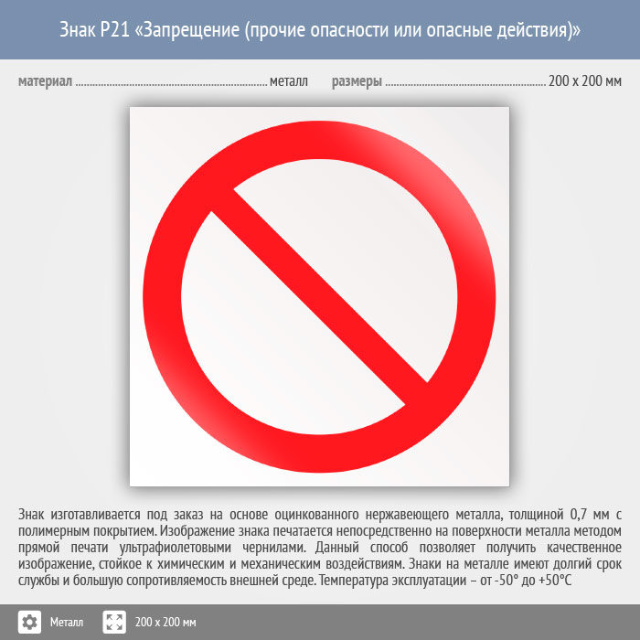 Знак P21 «запрещение (прочие опасности или опасные действия)» (металл, 200х200 мм) в Сургуте купить