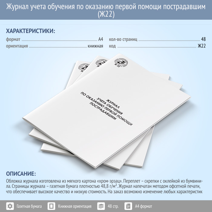 Журнал учета обучения по оказанию первой помощи пострадавшим (Ж22) в Сургуте купить