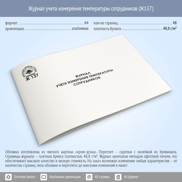 Журнал учета измерения температуры сотрудников (48 стр., Ж137) в Сургуте купить