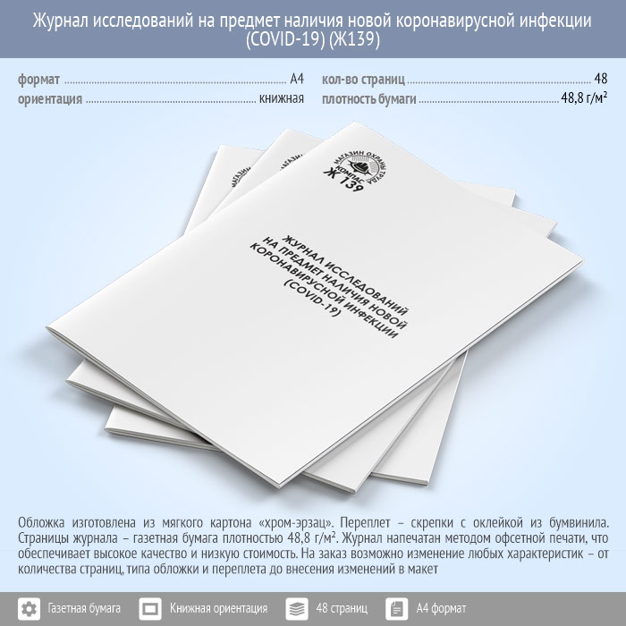 Журнал исследований на предмет наличия новой коронавирусной инфекции (COVID-19) (48 стр., Ж139) в Сургуте купить