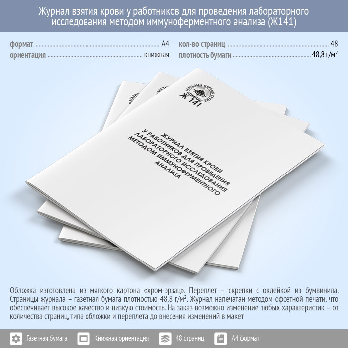 Журнал взятия крови у работников для проведения лабораторного исследования методом иммуноферментного анализа (48 стр., Ж141) в Сургуте купить