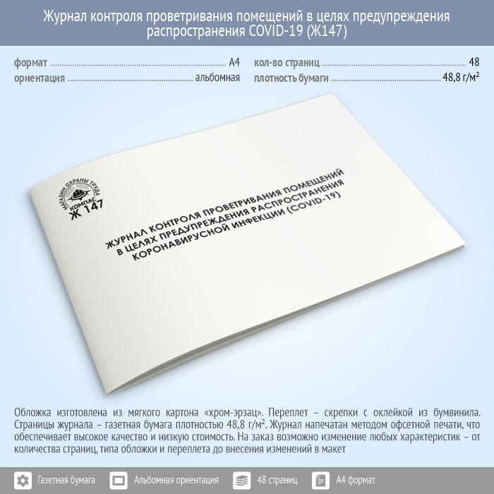 Журнал контроля проветривания помещений в целях предупреждения распространения коронавирусной инфекции (COVID-19) (48 стр., Ж147) в Сургуте купить