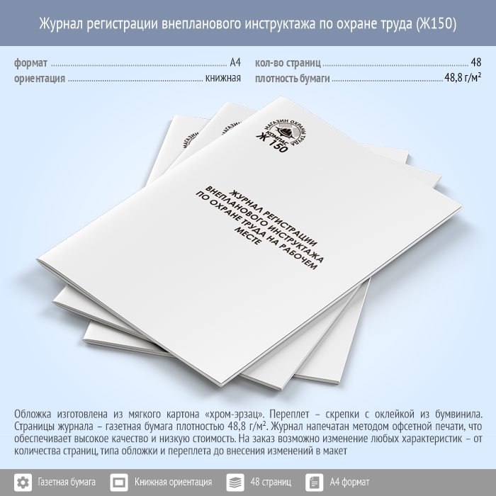 Журнал регистрации внепланового инструктажа по охране труда (48 стр., Ж150) в Сургуте купить