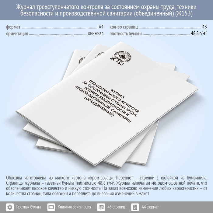 Журнал трехступенчатого контроля за состоянием охраны труда, техники безопасности и производственной санитарии (объединенный) (48 стр., Ж153) в Сургуте купить