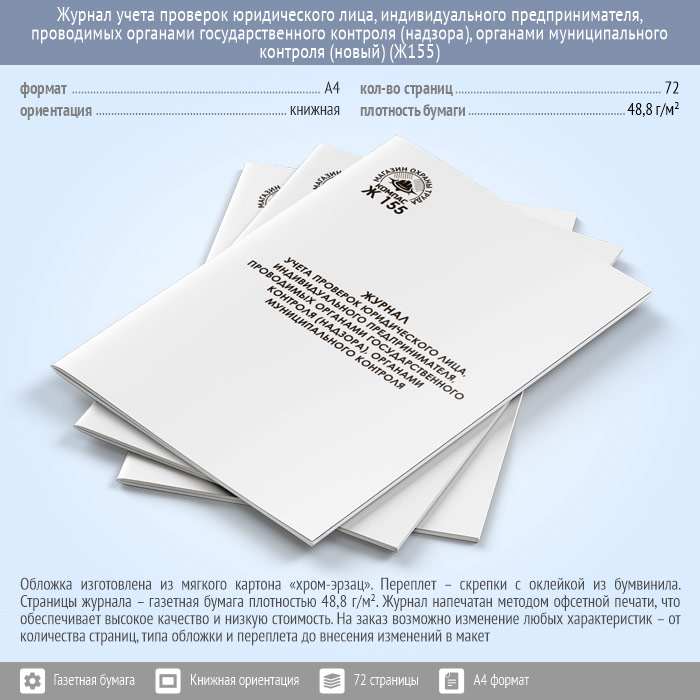 Журнал учета проверок юридического лица, индивидуального предпринимателя, проводимых органами государственного контроля (надзора), органами муниципального контроля (новый) (72 стр., Ж155) в Сургуте купить